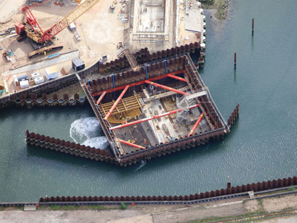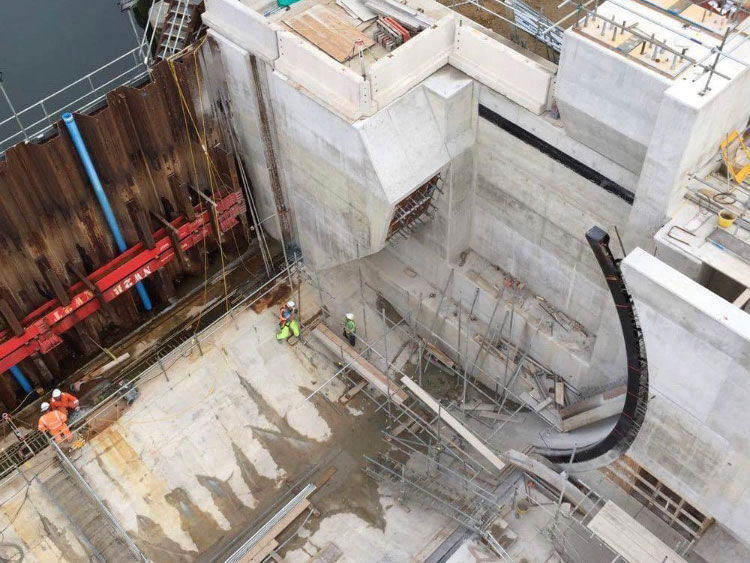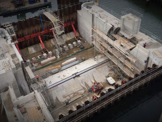 - The construction of the reinforced concrete structure to accommodate the rolling sector gate – which comprised a base with east and west piers